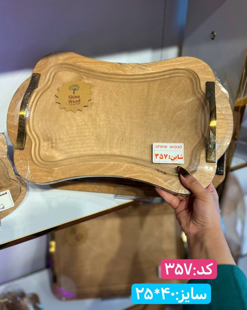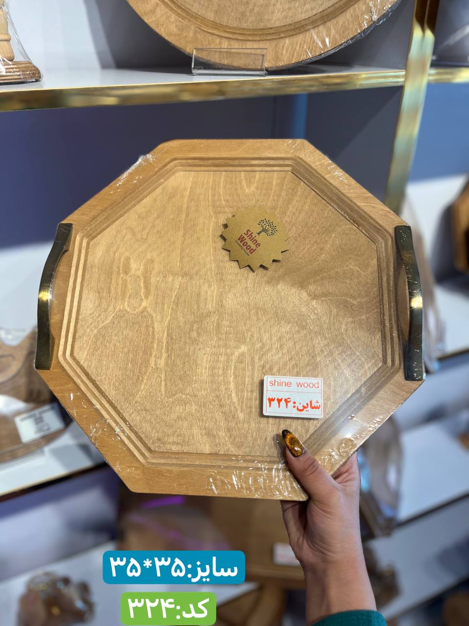 سینی های جدید و زیبای چوبی دسته فلزی جنس چوب گردو و کاملا قابل شستشو در ۳ طرح شش ضلعی ، بیضی و مستطیل با دسته های فلزی مستحکم