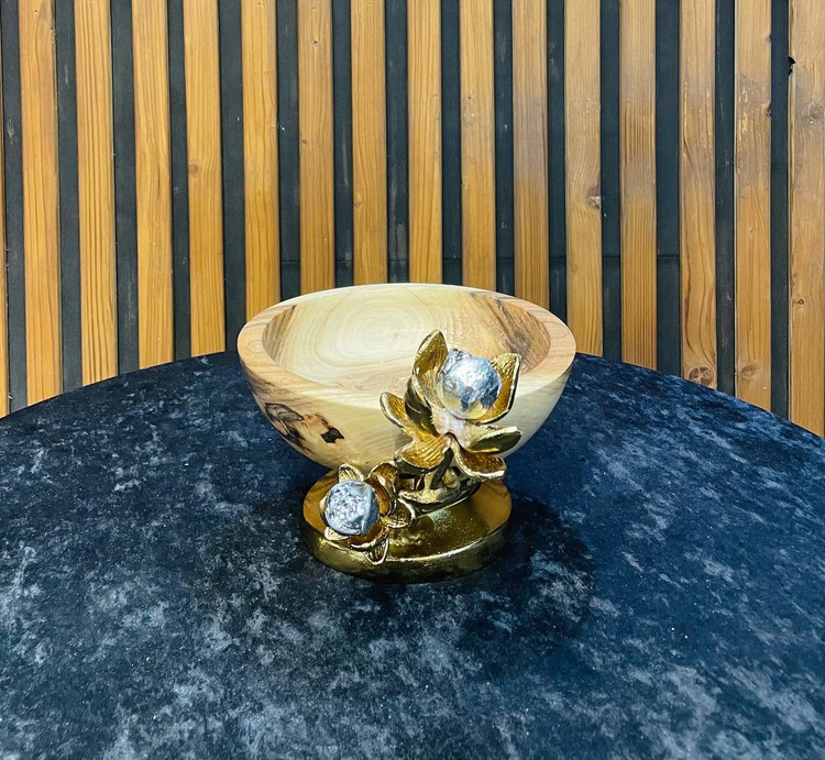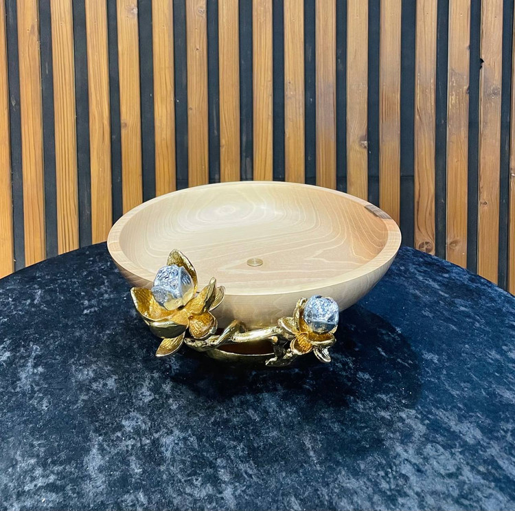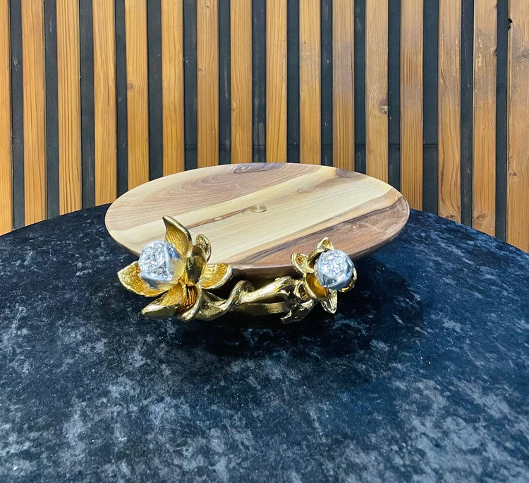 پذیرایی چوب با شکوفه نیلوفر برنجی