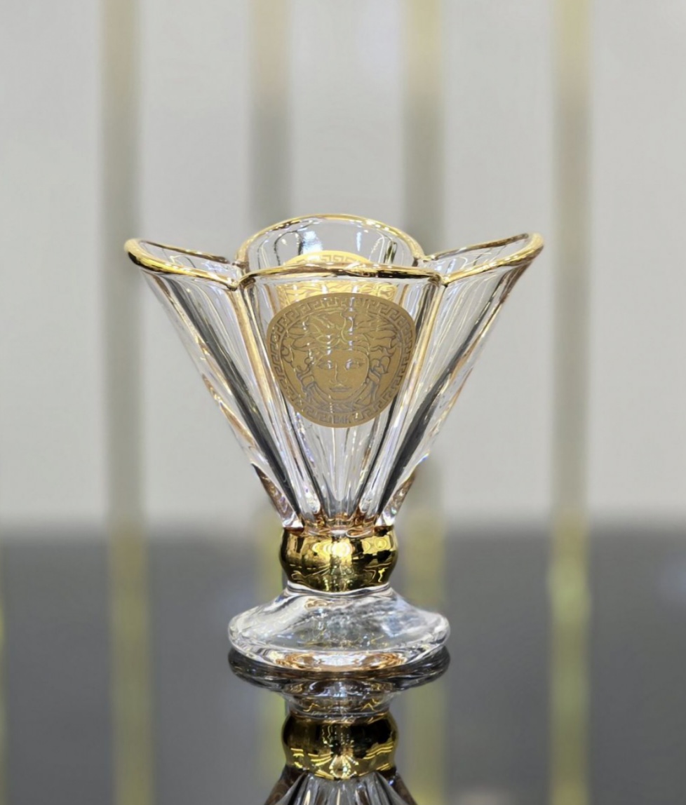 بستنی و دسر خوری مدل لاله با لوگوی جذاب ورساچه و لبه طلائی هلندی ۱۲ عیار هلندی بسیار شفاف و باکیفیت بدون حباب و موج مناسب سرو انواع بستنی ، دسر و تنقلات